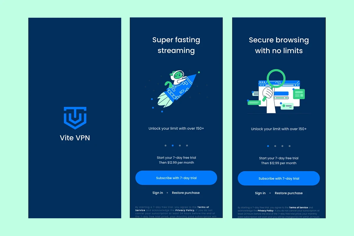 Vite VPN wanted more than a functional product—they needed a frictionless mobile experience that built instant trust. We crafted a minimalist, bold UI that made cybersecurity accessible to everyday users. With a focus on intuitive navigation, microinteractions, and clean hierarchy, we turned complex tech into a tap-and-go solution for global users.